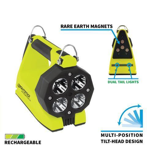 A lanterna recarregável intrinsecamente segura 5584 gera 600 lumens que preenchem a cena por 13 horas ultralongas a partir de quatro LEDs separados alojados em um cabeçote articulado de 180 graus para versatilidade máxima. Manter o botão pressionado permite um modo baixo de 250 lúmenes que economiza bateria, estendendo o tempo de execução para 25 horas quando o trabalho exige uso extremo. Projetado e desenvolvido como uma lanterna de mão e luz de área portátil, o 5584 apresenta uma base de borracha montada na parte traseira com um ímã de terra rara de força de tração de 25 libras para uma conveniente iluminação de cena ajustável sob demanda.