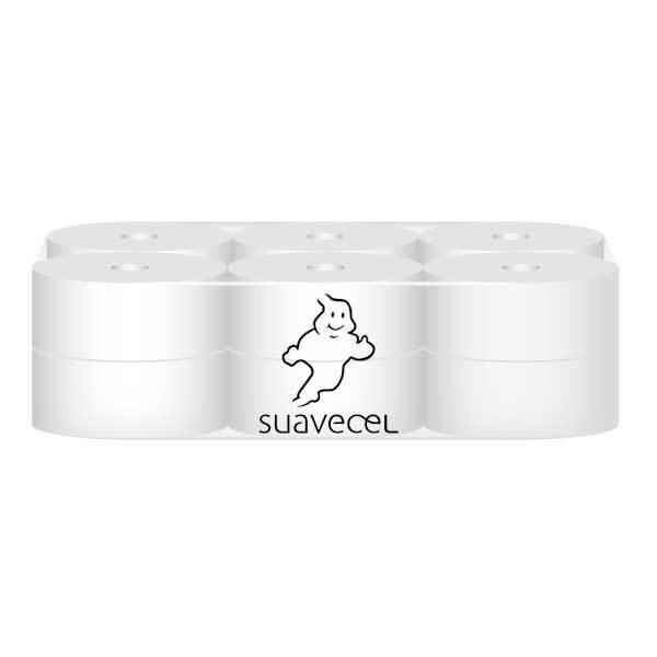 Papel higiénico industrial rolo jumbo Suavecel com 180 metros e folha dupla. Embalagem de 12 rolos ao melhor preço.