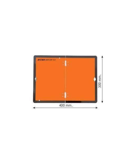 Placa ADR desdobrável na vertical, com a medida 400x300mm